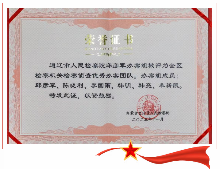 11月21日,全区检察机关检察侦查工作表彰大会传来重磅喜讯,通辽市检察机关一举斩获多项殊荣——获评1个“先进集体”,2个“优秀办案团队”,2起“优秀案例”,5名“先进个人”!这份沉甸甸的荣誉,是自治区检察院对通辽检察侦查工作整体质效、团队战力、个体素养的多方面认可,更是检察侦查人员深耕法治沃土、践行司法使命的生动答卷。