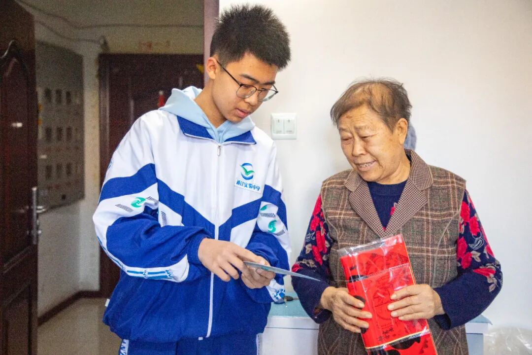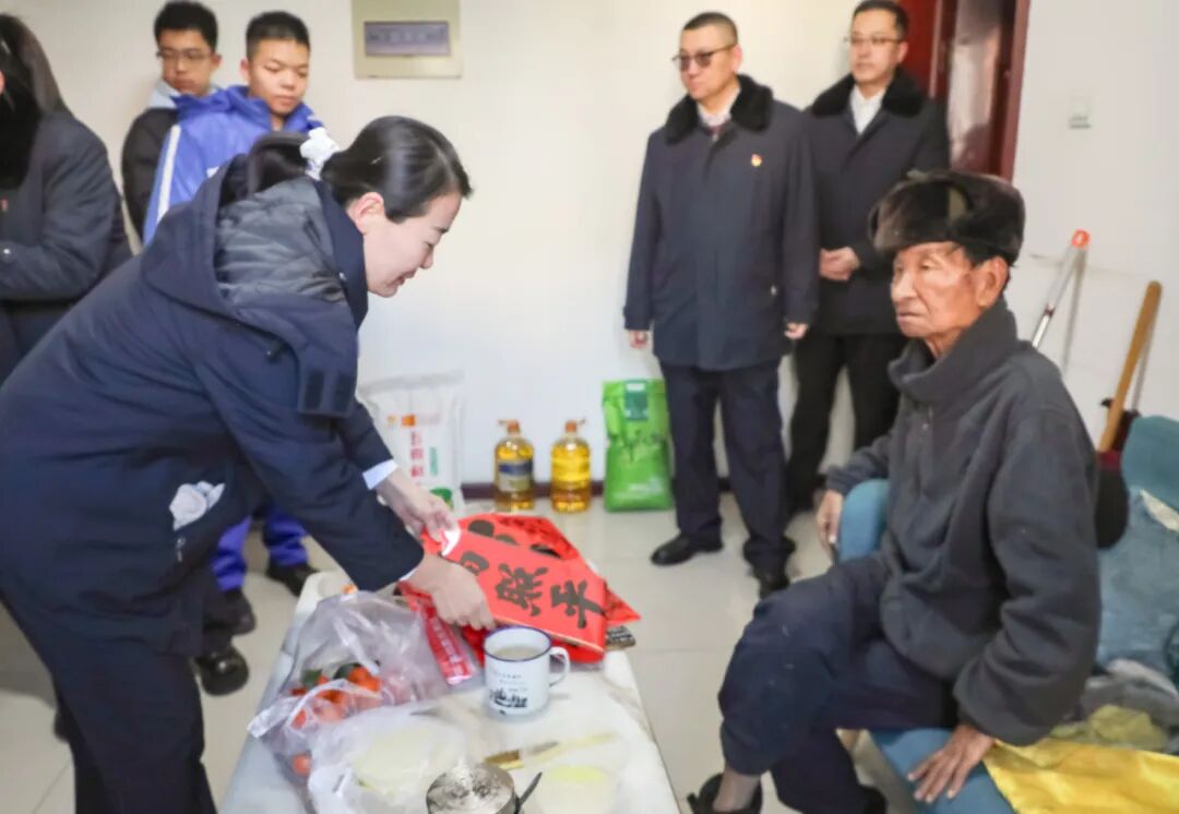 活动中,党员们为社区独居、困难老人送去米、面、油等慰问品,赠送春联并致以新春祝福,与老人亲切交谈,详细询问身体状况、生活起居及实际困难,叮嘱其做好冬季取暖安全防护。多名检察人员子女组成的中学生志愿者队伍格外亮眼,他们主动参与服务,协助搬运慰问品,在社区工作人员引导下为独居老人打扫卫生、整理房间,同时帮助老人调整手机音量、放大字体、安装“国家反诈中心”APP等,协助宣传防诈骗知识,以真诚行动传递尊老爱老敬意。