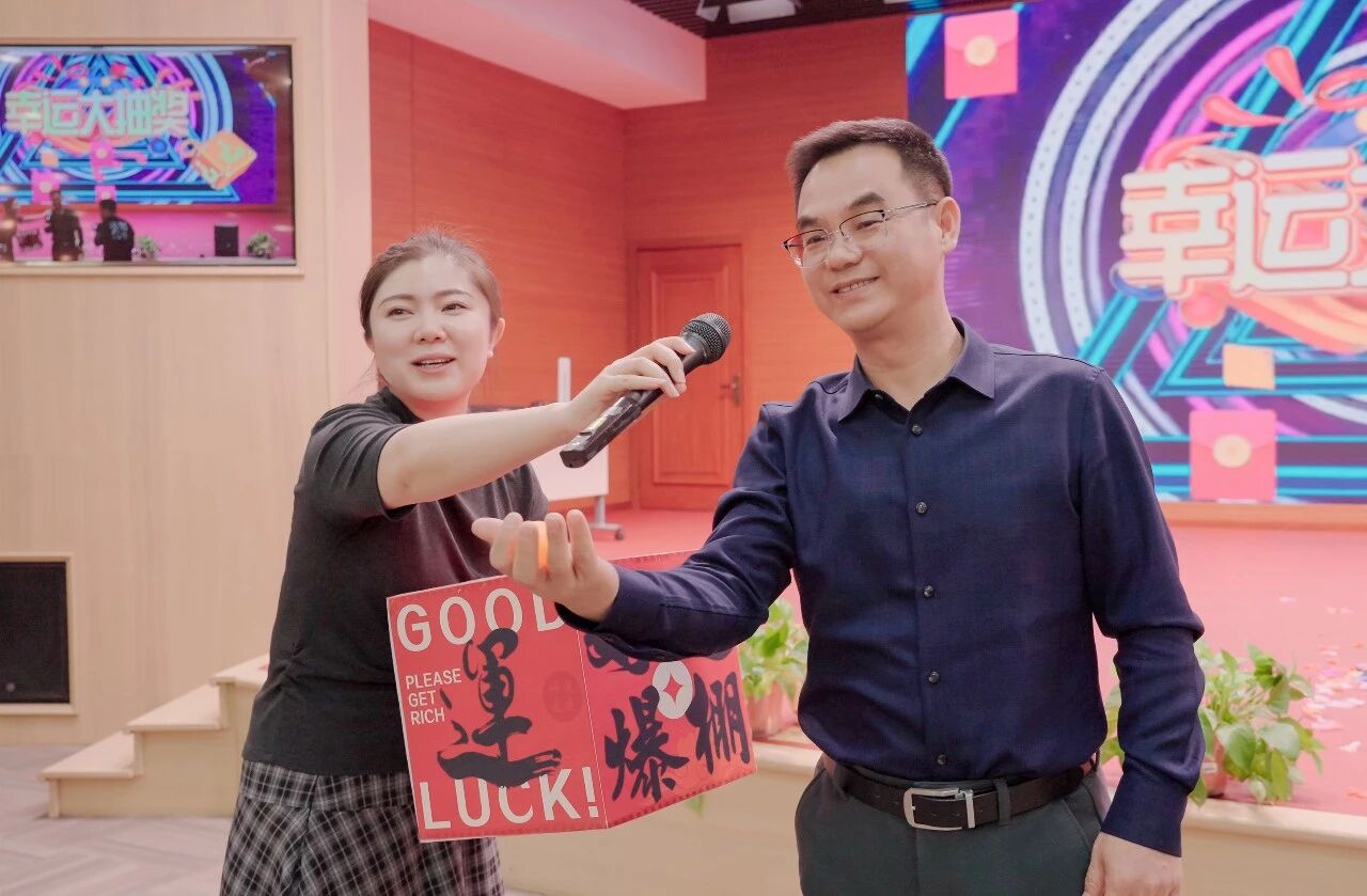 趣味游戏与惊喜抽奖穿插全场,让联欢会氛围持续升温。“阿凡提赶集”“马到成功”“你来比划我来猜”“猜拳吃番茄”等趣味游戏轮番上演,各党支部党员、群众踊跃参与,现场掌声、笑声此起彼伏,获胜党支部还收获了神秘小奖品。抽奖环节更是惊喜不断,三轮抽奖轮番来袭,既有领导现场抽取幸运儿,也有扫码抽奖的趣味形式,终极抽奖更是将现场氛围推向高潮。一张张中奖的笑脸,一份份新春的惊喜,让每一位检察人员都感受到了浓浓的节日暖意。