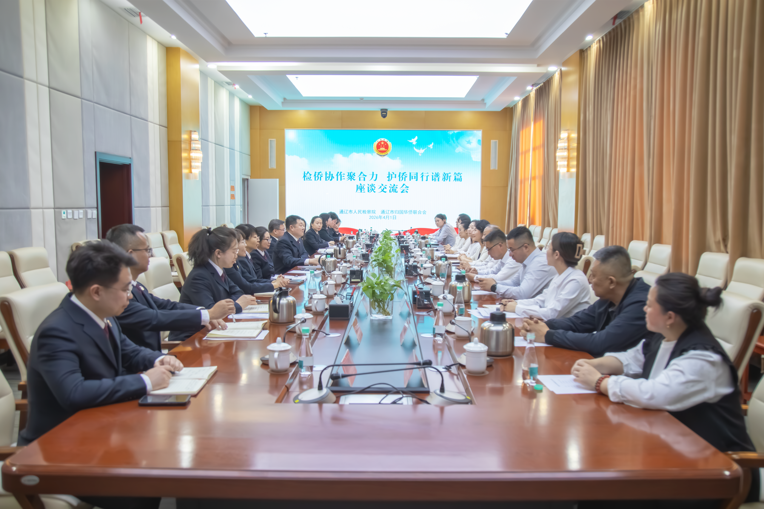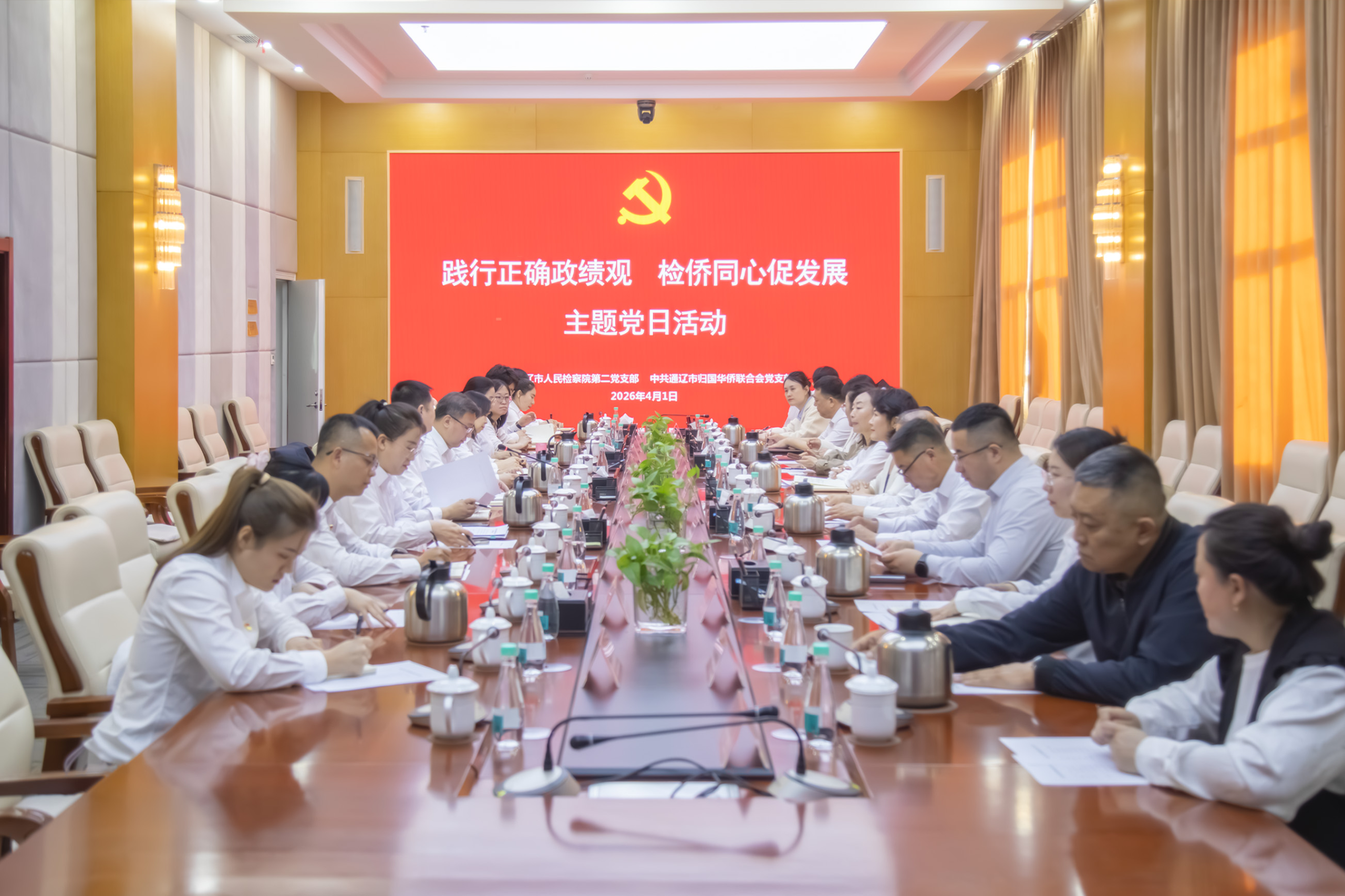 四月的通辽,春风和煦,万物复苏。4月1日,通辽市检察院第二党支部、通辽市侨联党支部携手开展以“践行正确政绩观 检侨同心促发展”为主题的党日活动。市检察院党组副书记、副检察长宋志学,市侨联党组书记、主席孙岩,侨界人大代表、政协委员、自治区侨联委员代表、部分党员同志等26人参加。
