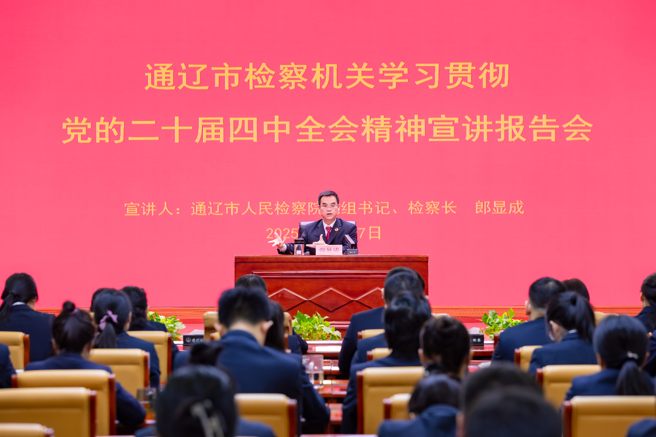 为深入学习贯彻党的二十届四中全会精神,统一全体检察人员思想行动,12月17日,通辽市检察院召开专题宣讲会,党组书记、检察长郎显成作宣讲报告。