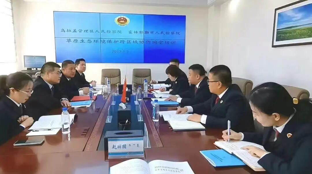 会签仪式结束后,开展了同堂培训第一课。两院检察长介绍了本院公益诉讼检察情况和亮点工作,参会人员就草原生态资源保护、如何进一步落实《草原生态环境保护公益诉讼检察跨区域协作机制》、如何推动两地公益诉讼检察协作、司法实务经验及遇到的问题和困难进行深入探讨。通过相互交流学习,提升了草原生态环境保护领域执法司法理念、尺度、标准等方面的认识和理解。