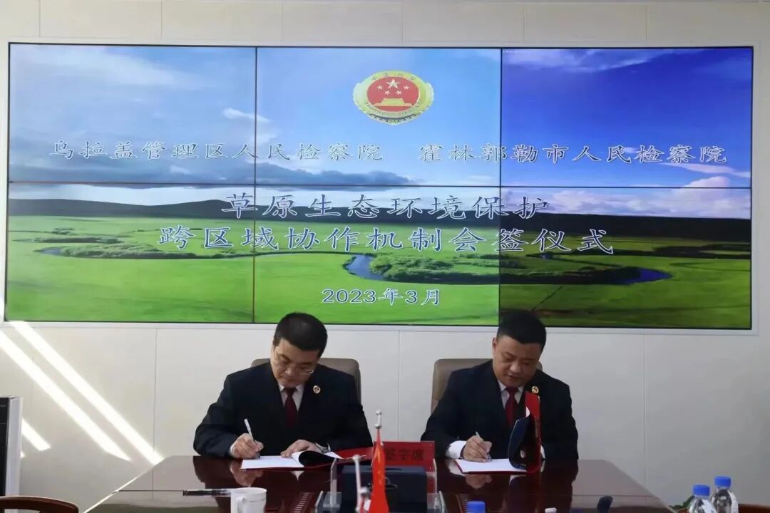 会上,联合签署《草原生态环境保护公益诉讼检察跨区域协作机制》,标志着两地检察机关正式开启跨区域公益诉讼协作工作。根据此机制,两地检察机关将开展区域案件线索移送、重大案件联合办理、信息资源共享、生态保护协同修复、联防联控溯源治理、联合学习研讨与协同普法等工作,形成保护草原生态环境合力,构建全方位、立体化的区域合作格局。