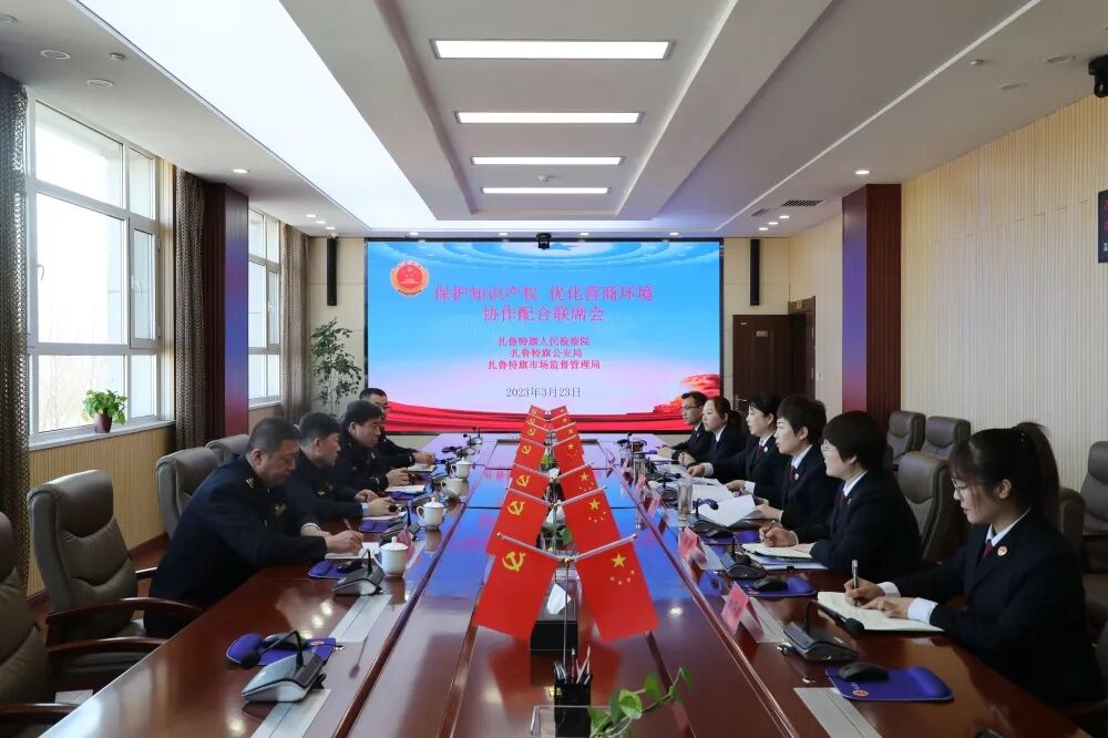 3月23日,扎鲁特旗检察院与旗公安局、市场监督管理局共同召开“保护知识产权,优化营商环境”协作配合联席工作会议,党组成员、副检察长项秀华、检委会专职委员吕然、公安局副局长张振民、市场监督管理局副局长宝音德力棍以及三家单位相关人员参加会议。