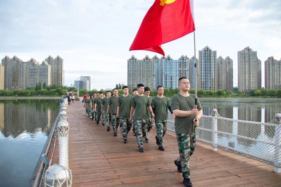 清晨 6:00 的辽河公园,晨曦微露。市检察院党组书记、检察长郎显成带领部分班子成员、支部委员、新进人员与退役军人干警一道,重温军旅岁月。