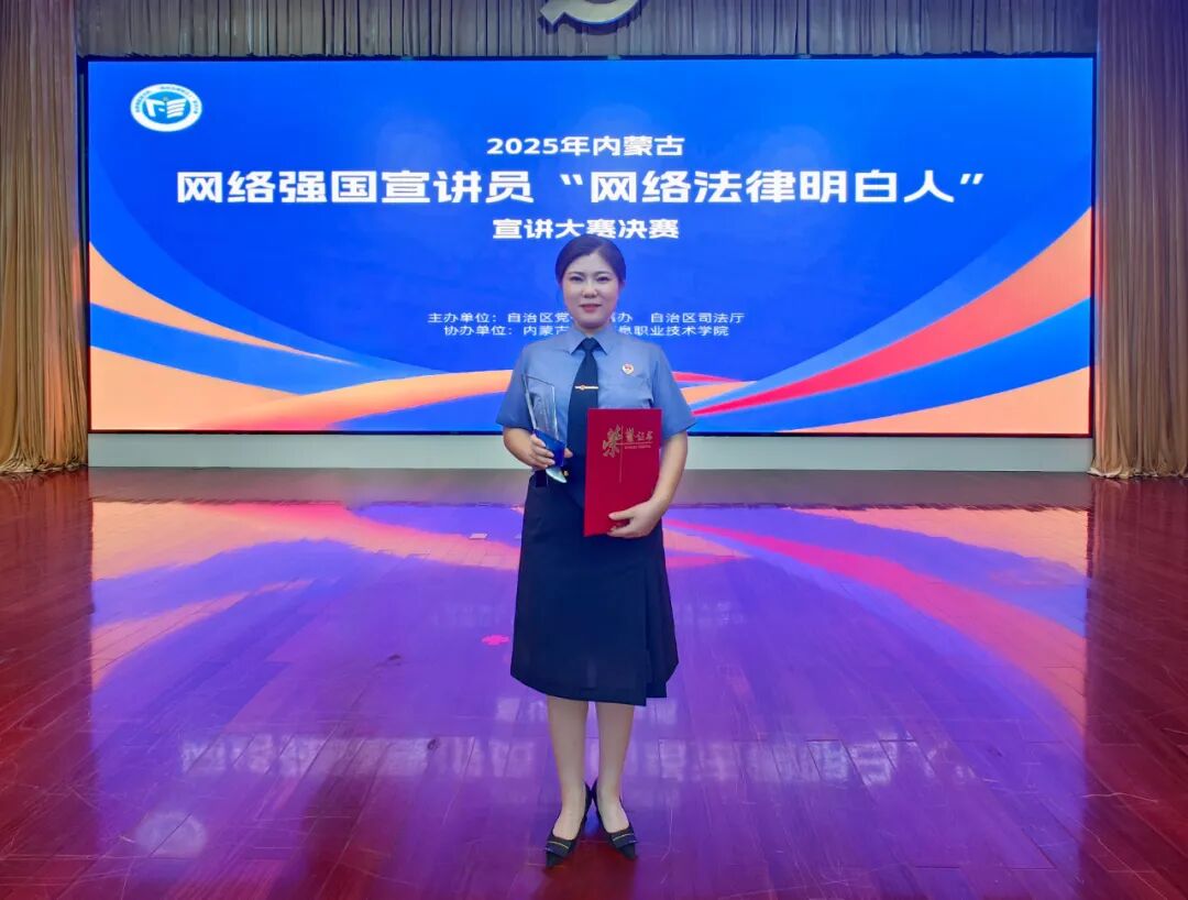 近日,在自治区党委网信办、自治区司法厅联合主办的2025年内蒙古网络强国宣讲员、“网络法律明白人”宣讲大赛决赛中,通辽市检察院王博荣获二等奖。