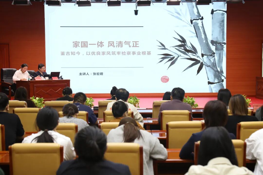 张宏君老师以“家国一体 风清气正——鉴古知今,以优良家风筑牢检察事业根基”为题,从三个维度展开深入阐释。在“家国同构——从小家规矩到大国之风”部分,其深刻解读了“家是最小国,国是千万家”的内在逻辑,强调良好家风是营造社会清风正气、维护国家和谐稳定的重要基础 ;“鉴往知来——汲取历史名家家风镜鉴”环节中,通过讲述历史名臣贤士与革命先辈的家风故事及家训精髓,展现了优良家风在个人成长、家族延续与国家治理中的深远影响 ;而“检身正己——让家风成为最好的传承”部分,则紧密结合检察职业特点与纪律要求,引导检察人员明确自身在家风建设中的责任,倡导将家风建设融入日常,以廉洁修身齐家筑牢抵御歪风邪气的“防火墙” 。