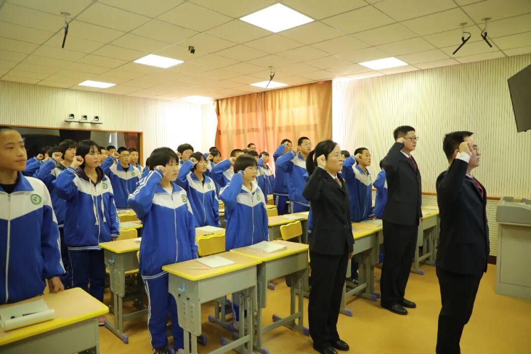 “我宣誓,忠于中华人民共和国宪法,维护宪法权威,履行法定职责,忠于祖国、忠于人民……”,同学们右手举拳,眼神坚定,声音嘹亮,在新时代发出自己的铮铮誓言。