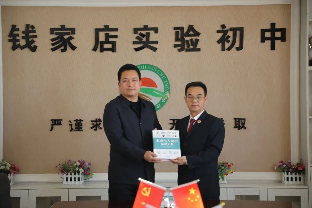 会后,郎显成代表通辽市检察院向钱家店实验初中赠送了《未成年人保护法律全书》、普法宣传手册等未成年人法治宣传资料。